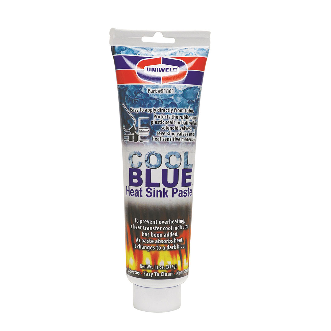 Uniweld’s Cool Blue™ Heat Sink Paste (Part# 91861) protects the rubber and plastic seals in ball valves, solenoid valves, reversing valves and heat-sensitive materials. To prevent overheating, a heat transfer cool indicator has been added. As the paste absorbs heat, it changes to a dark blue. Safe to use, non-toxic, harmless to skin and odorless. Easy to clean: wipe with a cloth or wash with water.