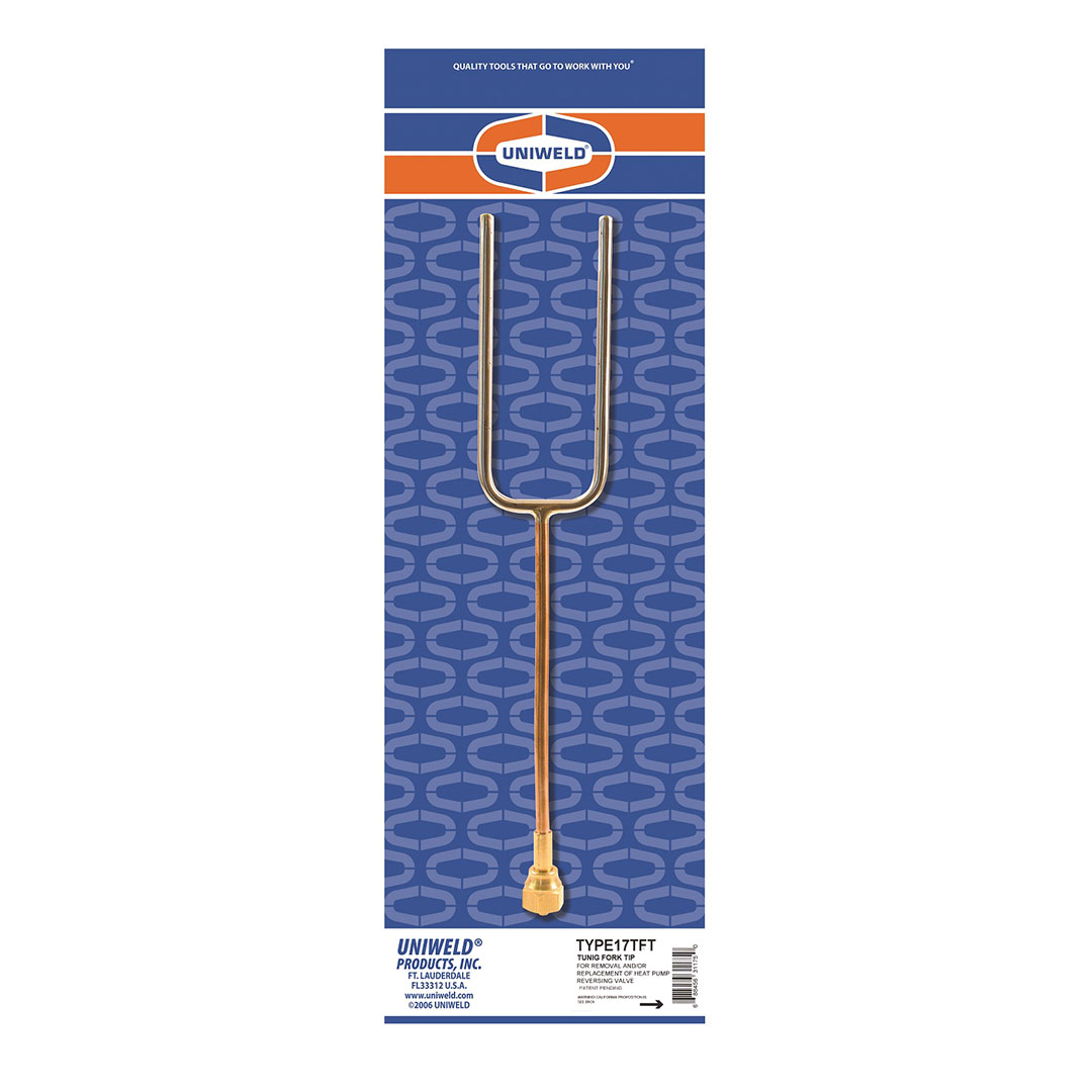 Uniweld’s Tuning Fork™ Tip allows you to heat up all the fittings of a heat pump reversing valve at once for easy removal of the defective valve. Remove and install the new valve without altering the original copper tube fittings. The Tuning Fork™ Tip makes it possible to work efficiently in confined spaces and get even heat quickly in tough-to-reach areas.