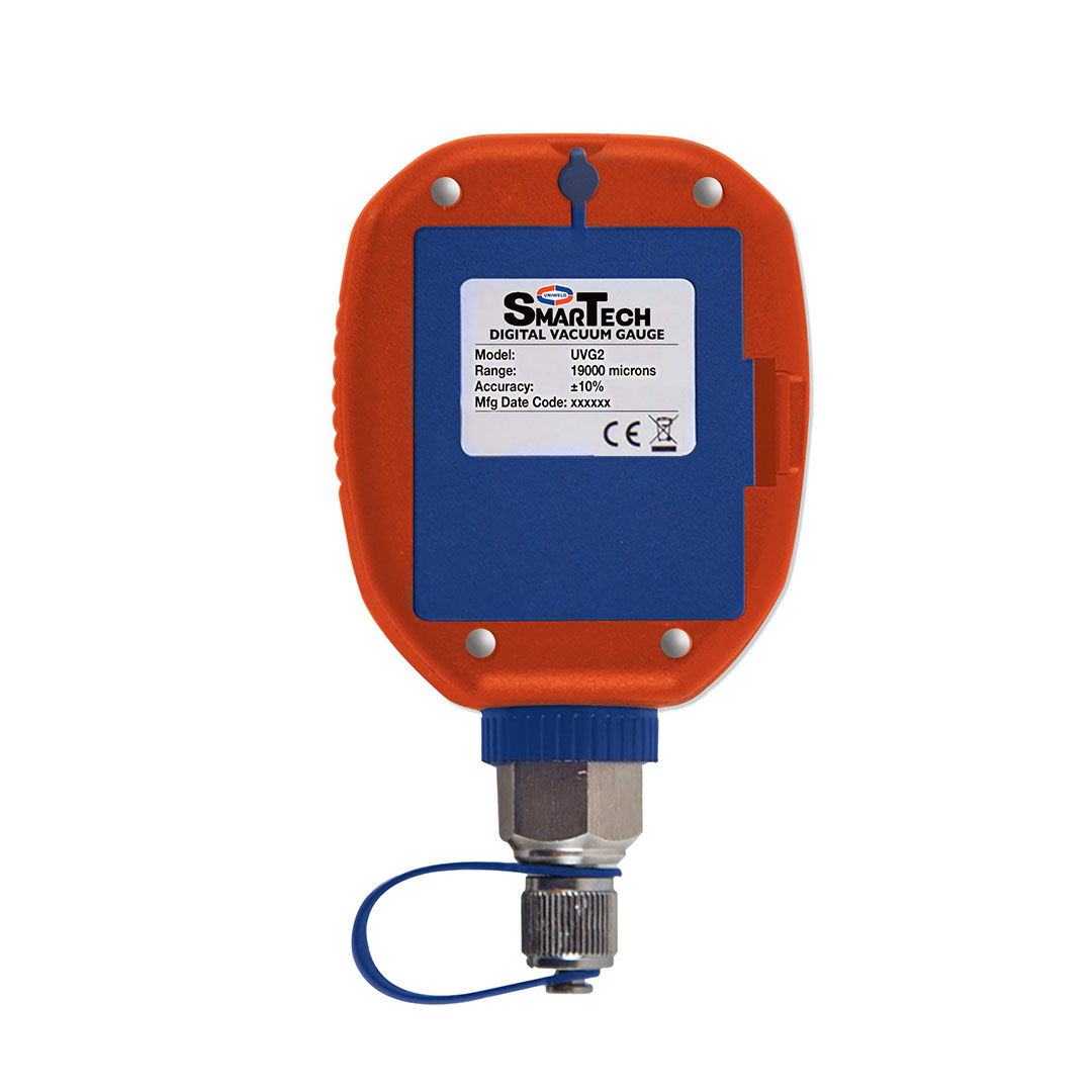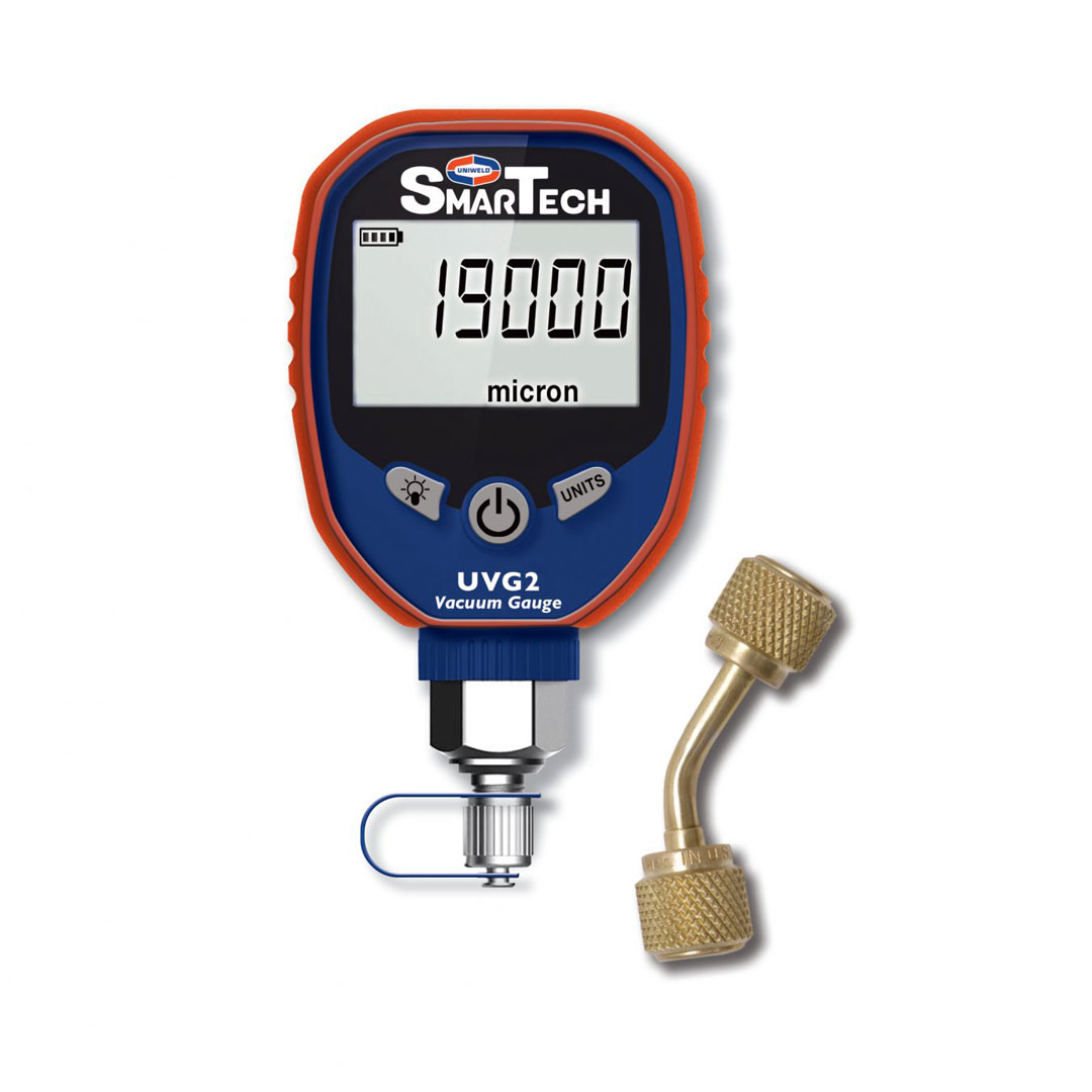Uniweld UVG2 Digital Vacuum Gauge provides unsurpassed vacuum accuracy and quickly measures vacuum in Microns, Pascals, Millibar, and mmHg with a resolution down to 1 micron. Oil Filter Disk Prevents Sensor Contamination. Keeps your sensor clean and accurate! Temperature Compensated Self-Calibration. Large, High-Visibility Backlit LCD Display. Requires (3) AA Batteries – Not Included