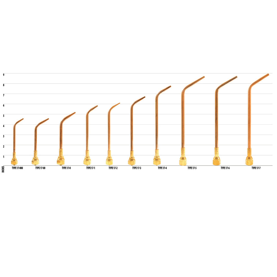 | Part# | Acetylene Consumption SCFH | Fuel PSIG | Oxygen PSIG | Welding Metal Thickness | Brazing Copper Tubing | Replacement Elbow | Replacement Mixer & Nut UM17 |